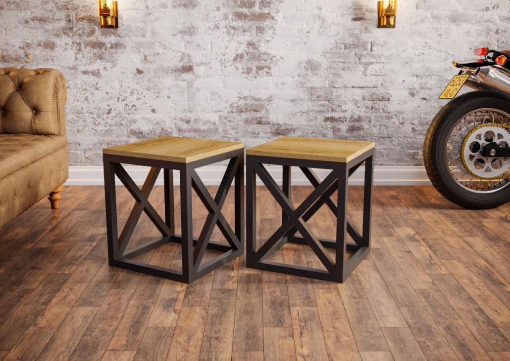 Эффектный, брутальный, табурет с декоративными крестами в стиле лофт. Отлично подойдет для офиса, в кафе и бары, в салоны услуг, а также дома на кухню. Визуально, соответствует всем признакам лофта. Изготовлен из профильной трубы 20х20, сидение выполнено из ЛДСП. Главное преимущество табуретки «Купер» — это долговечность! Не сомневайтесь, табурет прослужит вам долгие годы. Табурет может служить вам в качестве прикроватной тумбы или журнального столика.
